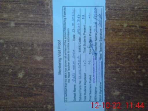 | Attendance Register | Head Teacher | MEA with School | Visit Proof |