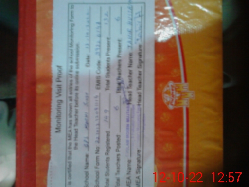 | Attendance Register | Head Teacher | MEA with School | Visit Proof |