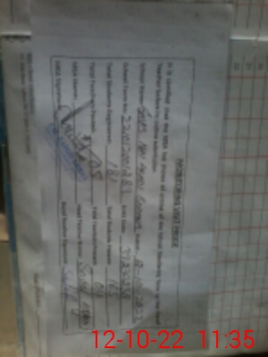 | Monitoring Date: 12-10-2022 | Start Time: 12-10-2022 11:00 AM | End Time: 12-10-2022 11:37 AM | Name of MEA: Za**** Ab**** | |