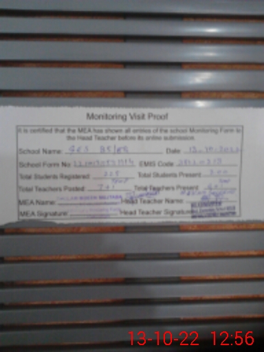 | Certified that this School was Inspected by the Undersigned MEA/DMO Today and the Information Stated Above is as Per Record. | |||||