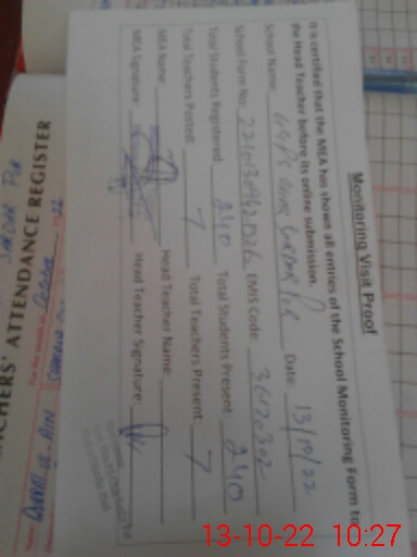 | Attendance Register | Head Teacher | MEA with School | Visit Proof |