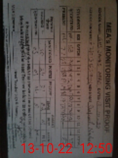 | Monitoring Date: 13-10-2022 | Start Time: 13-10-2022 11:20 AM | End Time: 13-10-2022 12:52 PM | Name of MEA: Sh**** Na**** | |