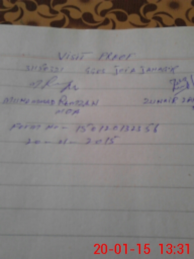 | Monitoring Date: 20-01-2015 | Start Time: 20-01-2015 12:53 PM | End Time: 20-01-2015 01:34 PM | Name of MEA: Mu**** Ra**** BN**** 37 | |