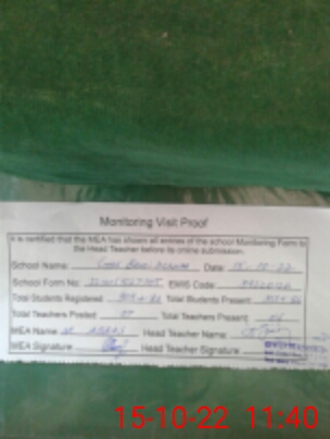 | Attendance Register | Head Teacher | MEA with School | Visit Proof |