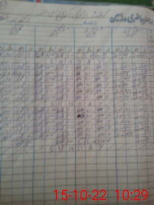 | CNIC | Full Name | Designation | R/C | Absence During Last Calender Month |