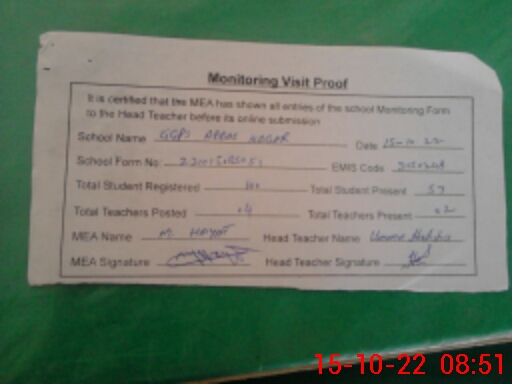 | EMIS Code: 31150248 | Name of School: GGPS ABBAS NAGAR | |||