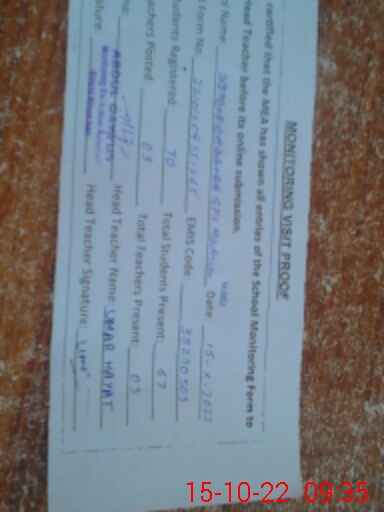 | Certified that this School was Inspected by the Undersigned MEA/DMO Today and the Information Stated Above is as Per Record. | |||||