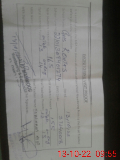 | Total no. of Classrooms: 15 No. of Classrooms Used for Teaching: 11 No. of Classrooms Storing Old Furniture, FTBs, etc: 0Comments if Any: THIS SCHOOL HAS 03 BUILDING 02 ARE FUNCTIONAL AND 01 IS CLOSE SAID CLOSED BUILDING HAS 04 ROOM AND 02 TOILET AND WHOLE BUILDING IS DANGEROUS ELECTRICITY METER IS OK AND BILL PAID MONTHLY |