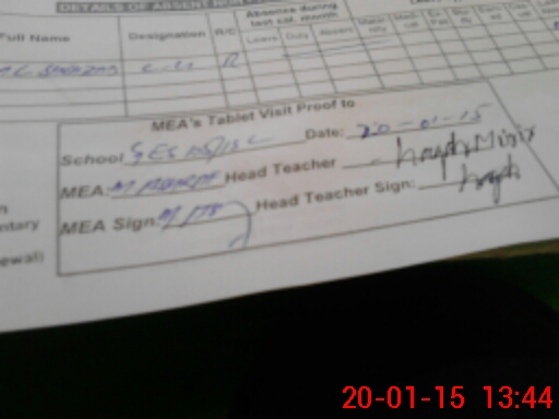 | Attendance Register | Head Teacher | MEA with School | Visit Proof |