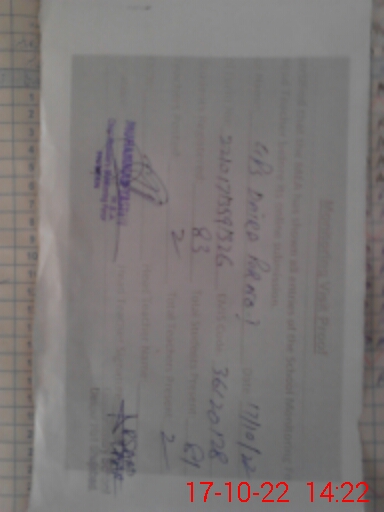 | Total no. of Classrooms: 3 No. of Classrooms Used for Teaching: 1 No. of Classrooms Storing Old Furniture, FTBs, etc: 0Comments if Any: 0 |