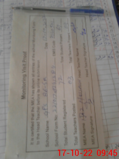 | Attendance Register | Head Teacher | MEA with School | Visit Proof |