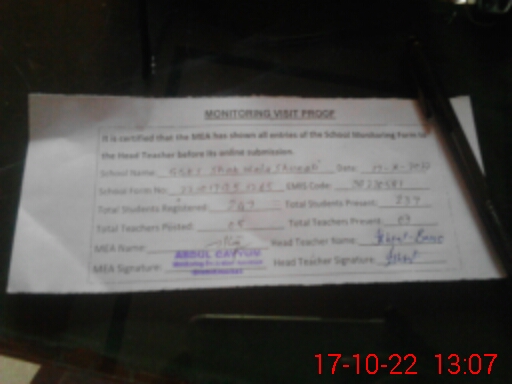 | Certified that this School was Inspected by the Undersigned MEA/DMO Today and the Information Stated Above is as Per Record. | |||||