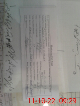 | Monitoring Date: 11-10-2022 | Start Time: 11-10-2022 08:34 AM | End Time: 11-10-2022 09:29 AM | Name of MEA: BA**** HU**** SH**** | |