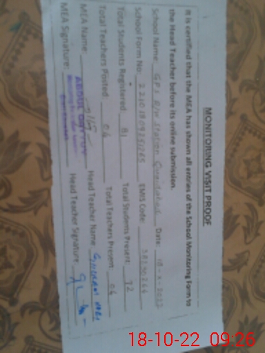 | Certified that this School was Inspected by the Undersigned MEA/DMO Today and the Information Stated Above is as Per Record. | |||||