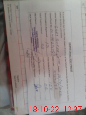 | School Visited by School Health & Nutrition Supervisor (No. of Visits) | 1 | Name1: | SYED ZAKI BAQAR SHAH | Name2: | |