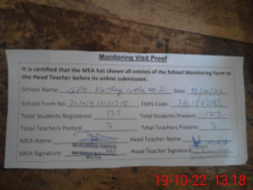 | Attendance Register | Head Teacher | MEA with School | Visit Proof |