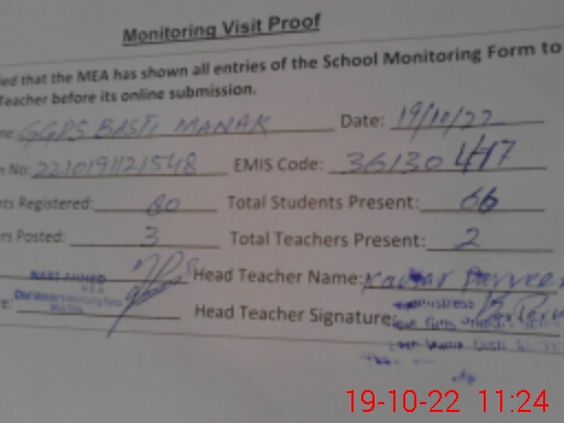 | EMIS Code: 36130447 | Name of School: GGPS BASTI MANAK MOUZA DAR WALA MULTAN | |||