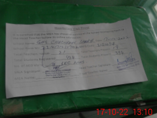 | EMIS Code: 31310918 | Name of School: GHS CHACHRAN SHARIF | |||