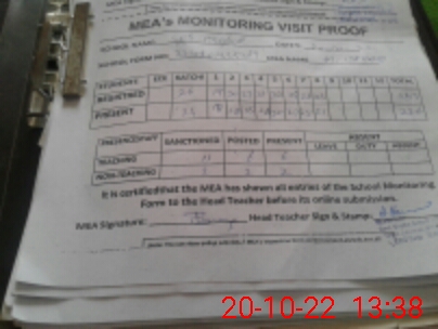 | Attendance Register | Head Teacher | MEA with School | Visit Proof |