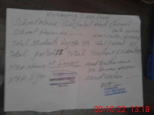 | EMIS Code: 36130037 | Name of School: GHS JALAL ABAD SHUMALI MULTAN | |||