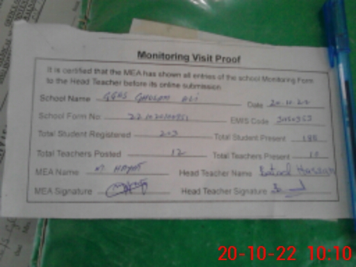 | EMIS Code: 31150353 | Name of School: GGES GHULAM ALI | |||