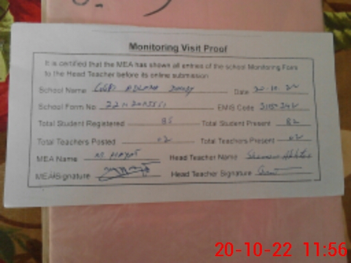 | Certified that this School was Inspected by the Undersigned MEA/DMO Today and the Information Stated Above is as Per Record. | |||||
