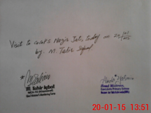 | School Visited by School Health & Nutrition Supervisor (No. of Visits) | 1 | Name1: | Nisar Ahmad | Name2: | |