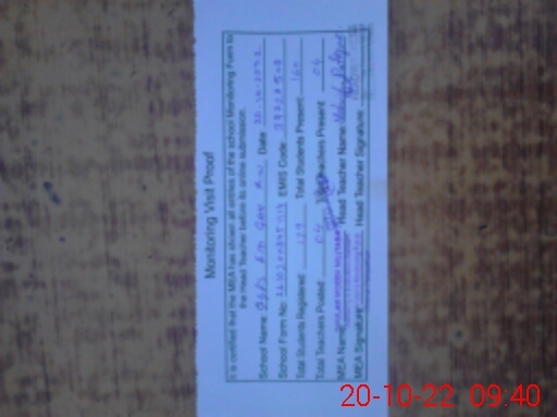 | Attendance Register | Head Teacher | MEA with School | Visit Proof |