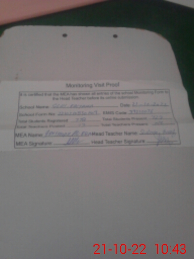 | Attendance Register | Head Teacher | MEA with School | Visit Proof |