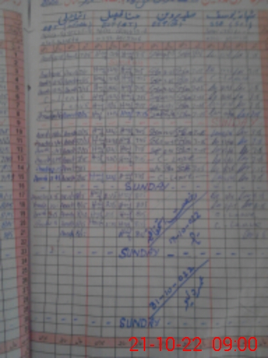 | CNIC | Full Name | Designation | R/C | Absence During Last Calender Month |