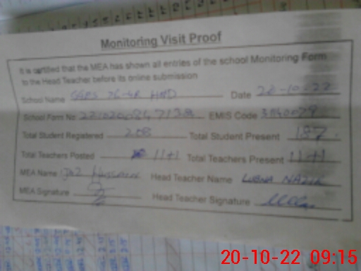 | Remarks (Use Separate Page if Required): Teacher sadaf ul huda pst is present in school | |||||