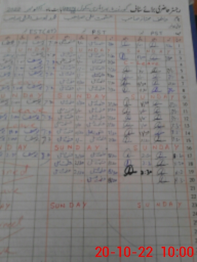 | CNIC | Full Name | Designation | R/C | Absence During Last Calender Month |
