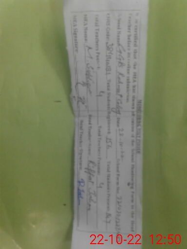 | Certified that this School was Inspected by the Undersigned MEA/DMO Today and the Information Stated Above is as Per Record. | |||||