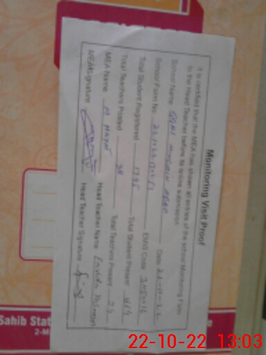 | Certified that this School was Inspected by the Undersigned MEA/DMO Today and the Information Stated Above is as Per Record. | |||||