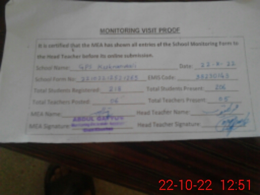 | EMIS Code: 38230143 | Name of School: GPS KUKRAN WALI OKHLI MOHLA | |||
