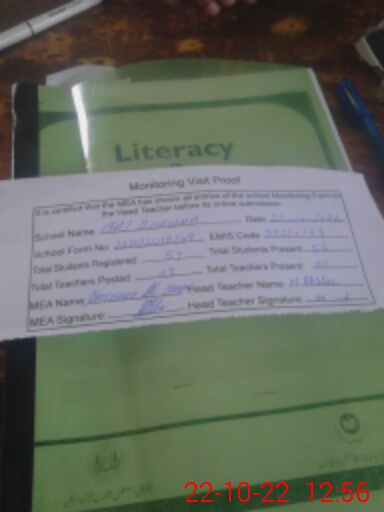 | Certified that this School was Inspected by the Undersigned MEA/DMO Today and the Information Stated Above is as Per Record. | |||||