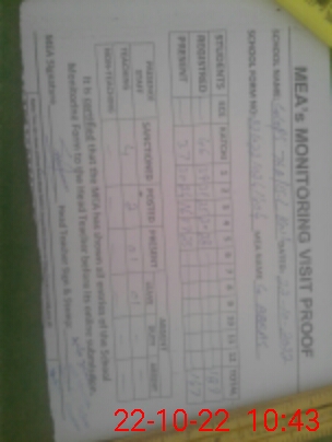 | Certified that this School was Inspected by the Undersigned MEA/DMO Today and the Information Stated Above is as Per Record. | |||||