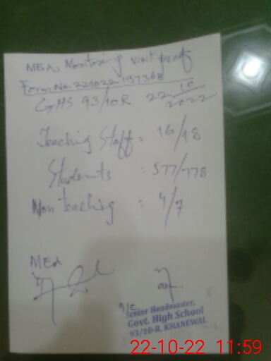 | EMIS Code: 36420009 | Name of School: GHS 93/10-R, KHANEWAL | |||