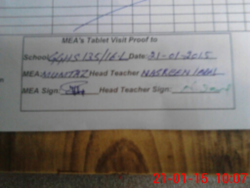 | Attendance Register | Head Teacher | MEA with School | Visit Proof |