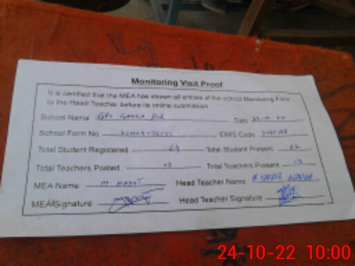 | EMIS Code: 31150198 | Name of School: GPS GANGA PUR | |||