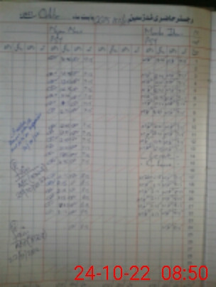 | CNIC | Full Name | Designation | R/C | Absence During Last Calender Month |