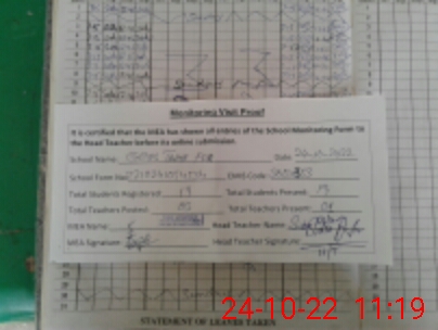 | Attendance Register | Head Teacher | MEA with School | Visit Proof |
