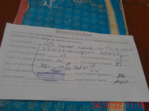 | EMIS Code: 31310292 | Name of School: GPS OKHAR WAND | |||