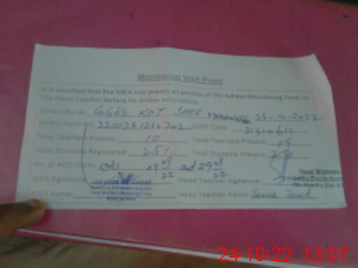 | Attendance Register | Head Teacher | MEA with School | Visit Proof |