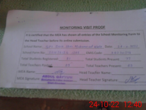 | Certified that this School was Inspected by the Undersigned MEA/DMO Today and the Information Stated Above is as Per Record. | |||||