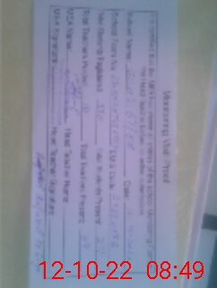 | Monitoring Date: 12-10-2022 | Start Time: 12-10-2022 07:45 AM | End Time: 12-10-2022 08:49 AM | Name of MEA: MU**** HA**** | |