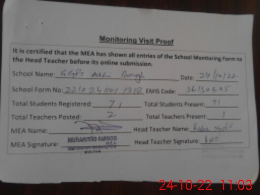 | EMIS Code: 36130605 | Name of School: GGPS AADHI BAGH | |||