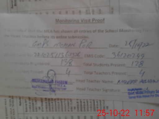 | EMIS Code: 36120249 | Name of School: GMPS MOHAN PUR | |||