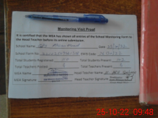 | EMIS Code: 36130322 | Name of School: GPS AHSAN ABAD | |||