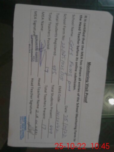 | Certified that this School was Inspected by the Undersigned MEA/DMO Today and the Information Stated Above is as Per Record. | |||||
